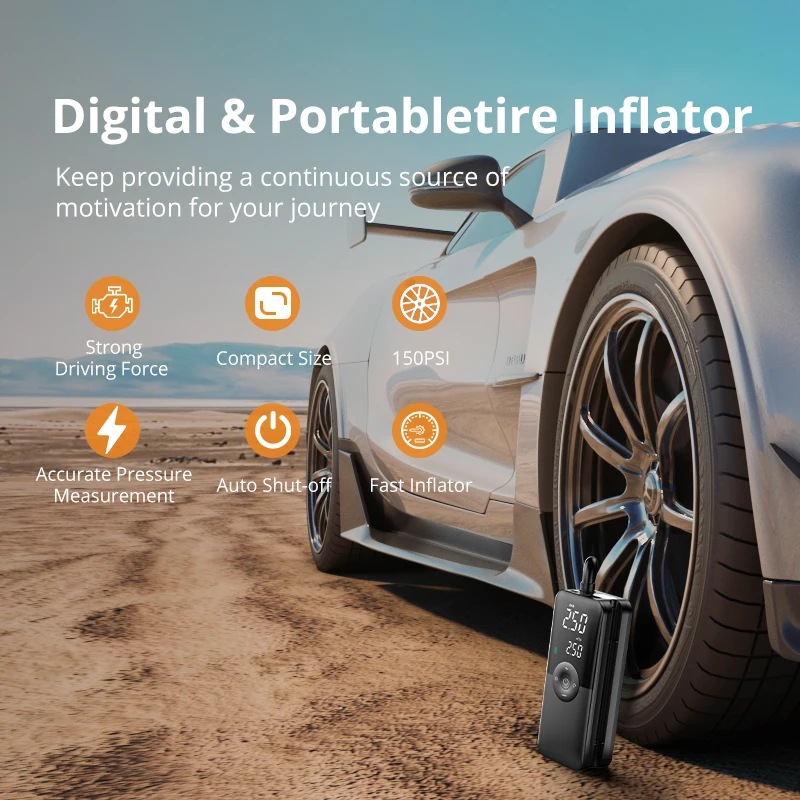 CARSUN Rechargeable Air Pump Tire Inflator Portable Compressor Digital Cordless Car Tyre Inflator for Bicycle Balls